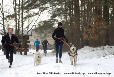 Ja uwielbiam leśne, biegowe wyprawy zimą. Moje dwie suki husky też je lubiły. Kochana Szara nie doczekała swojej dziesiątej zimy, ale z Białą zapuszczę się na śnieżny rajd w najbliższym czasie z pewnością nie raz. Niech no tylko suka wyjdzie z zapalenia gardła (bo psy, jak ludzie, też potrafią się czasem przeziębić). Tylko pamiętajmy, że pies w lesie nie może biegać luzem, grozi za to mandat, zwłaszcza na terenach chronionych. Ja zawsze zapinam psa w uprząż, dzięki której sobaka mnie ciągnie i zasuwa mi się lżej. I nie ma wtedy ryzyka, że pies zniknie z oczu w pogoni za dzikim zwierzem, którego trop zauważył, a raczej wywąchał w śniegu.