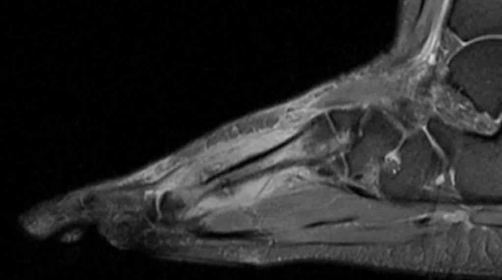 To, oczywiście, niewielki odsetek złamań zmęczeniowych, ale bardzo spektakularne i niebezpieczne, bo może doprowadzić do trwałego kalectwa. To świadczy o tym, jak źle miała poprowadzony trening, jak brakowało jej regeneracji przy intensywnym treningu (od zera do maratonu w ciągu roku!) i ile popełniono błędów funkcjonalnych oraz błędów w technice samego biegu, do tego jeszcze źle dobrane obuwie. Wszystkie te czynniki plus zaburzenia hormonalne spowodowały, że ona wyprodukowała złamanie zmęczeniowe, które ja pokazuję na prezentacjach jako coś wyjątkowego.