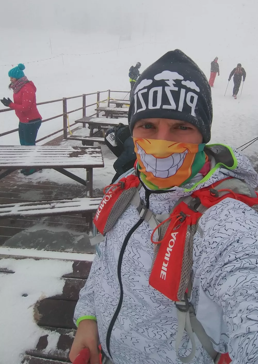Na szczycie szybko do mnie dotarło, że decyzja organizatorów o skróceniu trasy była dobra. Warunki? Bardzo silny wiatr, siarczysty śnieg, lód na trasie. Ciężko, ale przyjemnie i fajnie, chociaż nogi były nastawione na dłuższe bieganie.