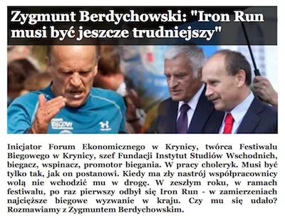 Inicjator Forum Ekonomicznego w Krynicy i twórca Festiwalu Biegowego, wspinacz i promotor biegania, udzielił obszernego wywiadu portalowi www.Bieganie.pl.
