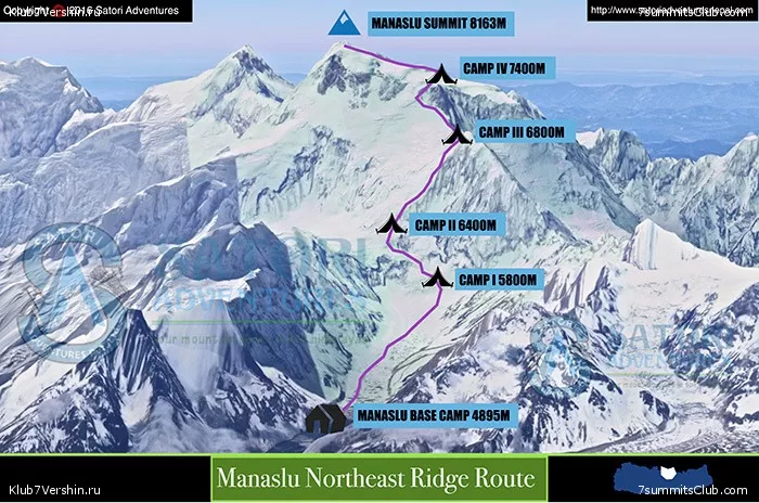 Manaslu - Góra Ducha (nazwa pochodzi z sanskryckiego słowa „manasa”) leży w północnej części Nepalu, w dystrykcie Lamjung, ok. 70 km na wschód od Annapurny. Zbudowana jest ze skał metamorficznych. Ze stoków Manaslu spływają trzy lodowce: Manaslu, Pungen i Thulagi. To jeden z najpóźniej zbadanych ośmiotysięczników, a pierwsze zdjęcia ze szczytu pochodzą dopiero z 1950 r. (Szwajcar Toni Hagen).
