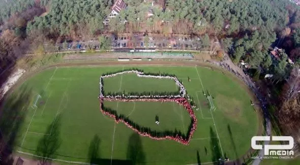 Zanim jednak doszło do biegu, na murawie stadionu stworzono żywą biało-czerwoną mapę naszego kraju. Jej widok z góry był powalający!