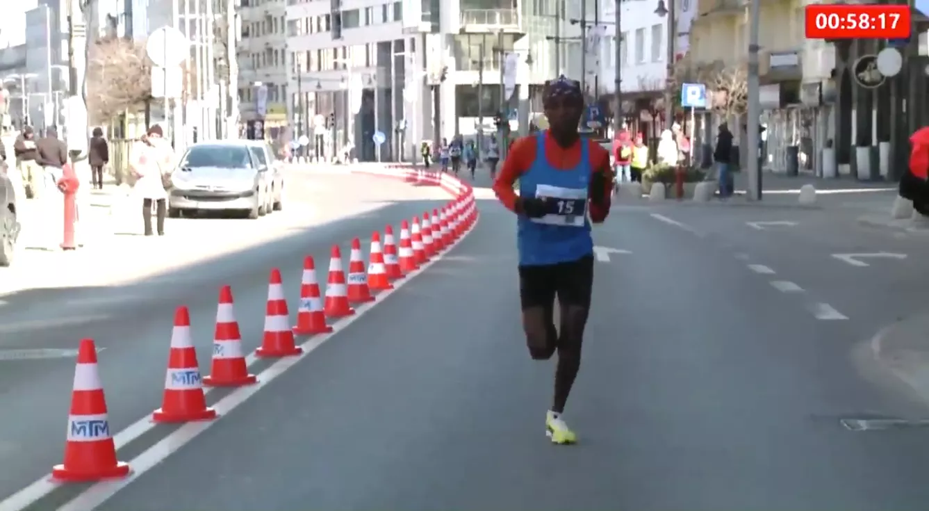 Po 15. kilometrze sprawy w swoje ręce wziął Hilary Kiptum Kimayo, ale ostatni z Europejczyków, Hiszpan Oubaddi El Hassan nie zamierzał odpuszczać. Na ok. 18. kilometrze od liderującej piątki odpadł…. Hilary Kimayo. Tempo biegu nadawał wówczas Ben Somikwo.