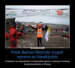 Antarctica Marathon to bieg tak popularny, że miejsca na liście startowej są wypełnione po brzegi do 2016 r. Równie zapchane są listy rezerwowe, a zapisy na 2017 r. powoli dobiegają końca. Ten bieg jest także areną polskich sukcesów. Wczoraj do Polski wrócił Bartosz Mazerski, który 9 marca wygrał maraton na Wyspie Króla Jerzego w pięknym stylu, osiągając czas 3:17:55. Tym samym zdobył Koronę Maratonów Ziemi, czyli ukończył 42-kilometrowe biegi na wszystkich, siedmiu kontynentach.