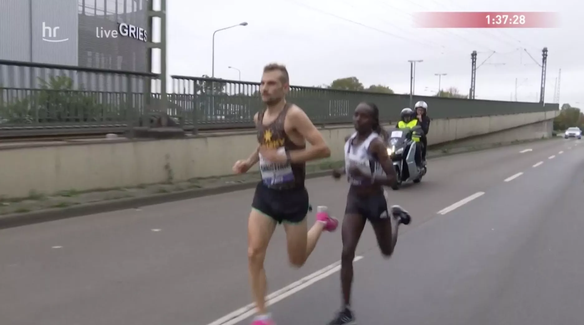 „Zając” Kenijki… najwyraźniej nie wytrzymał narzuconego tempa, bo po 15. kilometrze zszedł z trasy. Para biegła wtedy na wynik 2:14:17, co daje średnie tempo 3:10 min./km!