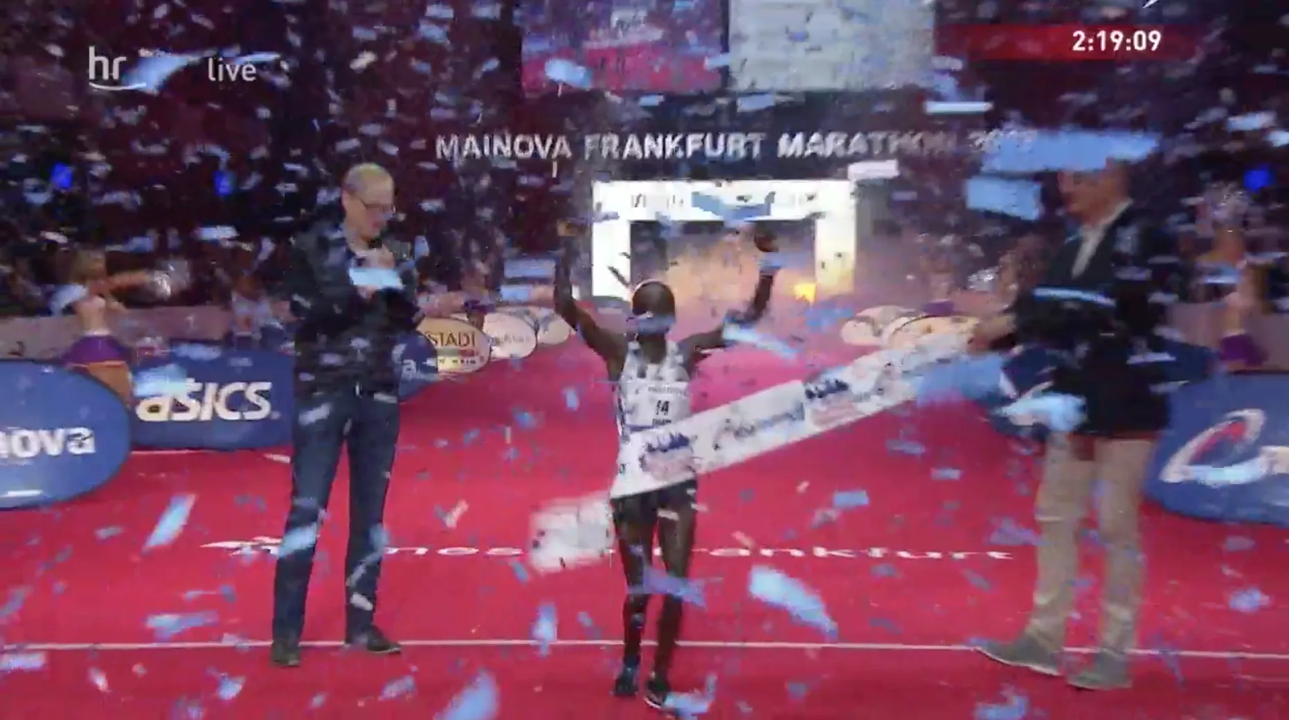 38. Mainova Frankfurt Marathon nie ukończył Błażej Brzeziński, który ostatni punt kontrolny minął na 25. kilometrze (półmaraton w 1:07:29).