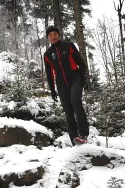 Wymknęliśmy się całą ekipą na śnieg i lekki mróz żeby odbyć trening siły biegowej. Po paru kilometrach rozgrzewki po asfalcie (tak, nawet w środku Gór Stołowych można biegać po asfalcie i wcale nie jest to najprostsze kiedy droga jest zlodowacona) rozpoczęliśmy wykonanie standardowych ćwiczeń, które pewnie każdy zna lub o których chociaż słyszał. Były więc skipy A i C, podskoki i wieloskoki. Ale choć wykonywałem je już wielokrotnie, to czym innym jest wykonywanie ich bez świadków, a czym innym ćwiczenia pod czujnym okiem dwóch trenerów.