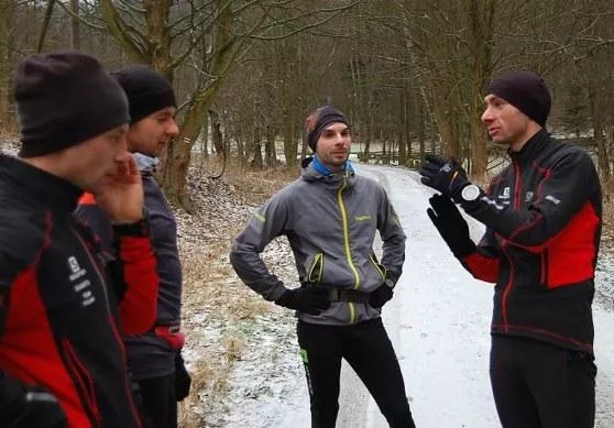 Na miejscu naszych zimowych kaźni stawiło się tym razem kilkanaście osób o bardzo różnych doświadczeniach biegowych i wieku. Już po pierwszym treningu, przeprowadzonym na trasach przyjaźni polsko-czeskiej, przy sporym zamgleniu, Marcin i Piotr mogli z naszej ekipy wyłonić grupy na różnym poziomie zaawansowania. Od początku też było widać ich zaangażowanie i otwartość na wszelkiej maści pytania. Także te niekoniecznie związane z treningiem.