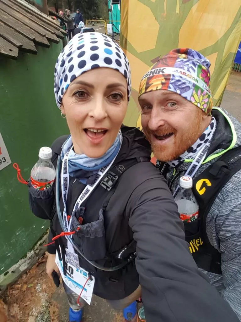 Irek napędza ten bieg, jest cały czas z przodu i ma tę moc. Cieszę się, bo w końcu, zaczyna działać. Robi się jednak maksymalnie zimno. Pada śnieg i pod stopami robi się biało. Przyspieszamy, aby się zagrzać i doganiamy znajomych biegaczy. Przez 2 km naparzamy razem, żartujemy i przekazujemy sobie wsparcie. Zaczyna się ostatnie podejście na Szyndzielnię i później ma być już „lajtowo”, chociaż na Leśniku nigdy nic nie wiadomo.