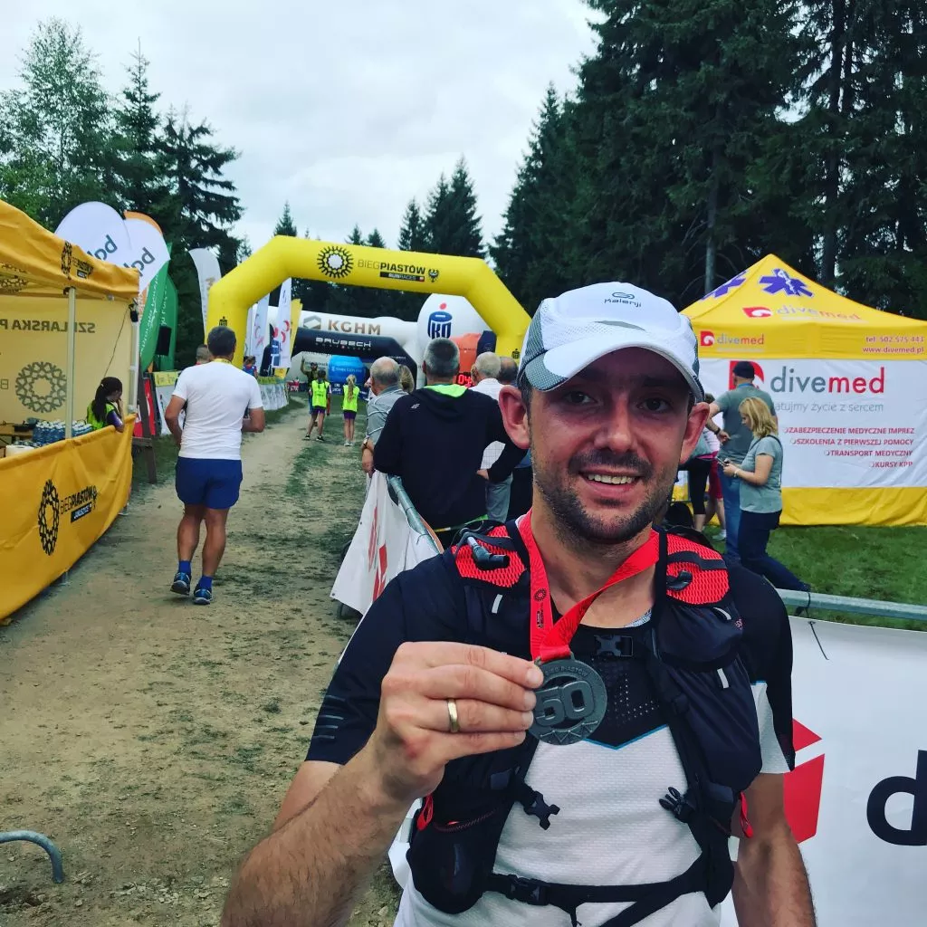 Na 45 kilometrze dogoniłem jednego kolegę, z którym co chwila zamienialiśmy się pozycjami na przestrzeni 2-3 kilometrów wcześniej. Rzucił mi: „nie mam już siły, mięśnie mi wysiadają”. Mówię mu: „chłopie, spokojnie. Pójdźmy kawałek, do kupy kamieni, potem biegniemy do tamtych drzew. Nic na siłę, jak musisz odpoczywaj idąc.” Tak przebyliśmy wspólnie 1,5-2 km. Dobiegła wtedy za nasze plecy trzecia kobieta. Zmotywowani dodatkowo, wiedząc, że do mety już niespełna 3 km i dodatkowo zbieg, ruszyliśmy żwawo do przodu. Kolega złapał wiatr w żagle i udało mu się odskoczyć. Ja natomiast do końca kontrolowałem tempo i zawodniczkę za plecami, dobiegając ostatnie trzy kilometry w tempie ok. 4:30-4:40 . Kolega finiszował 19 sekund przede mną, ja z kolei byłem szybszy od trzeciej kobiety o 23 sekundy. Ktoś pomógł mi, ja pomogłem komuś…
