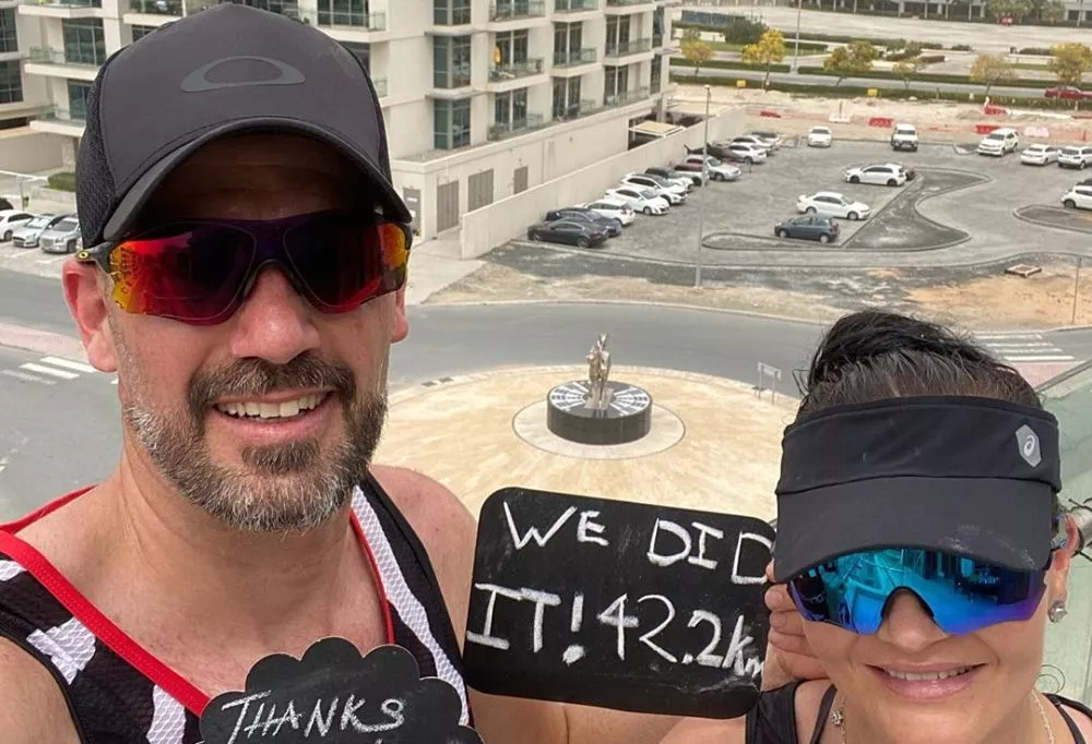 Collin Allin i jego rodzina pochodzą z RPA, ale pracują w Dubaju. To właśnie tam zastały ich obostrzenia związane z koronawirusem. Izolacja w domach trwa tam już trzeci tydzień i, jak wszędzie, jej przetrwanie wymaga kreatywności. Collin i jego żona postanowili więc pobiec maraton na swoim balkonie. Wyzwanie wymagało zrobienia 2100 pętli, bo balkon miał sporą długość 20 metrów i bez trudu pomieścił dwoje biegaczy.