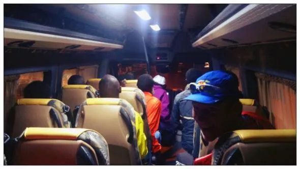 Godzina 5:15. Pod hotel podjeżdża bus, którym mamy dojechać do miasteczka biegowego. Z kartonowymi pudełkami ze specjalnie dla nas przygotowanym śniadaniem wzbudzamy zainteresowanie naszych współtowarzyszy podróży. A są nimi ku naszemu zaskoczeniu… Kenijczycy. Coś czujemy, że jest wśród nich zwycięzca tegorocznej edycji maratonu. I oczywiście nie mylimy się. W sumie to chyba wszyscy nasi kenijscy busowi znajomi zajęli miejsca w pierwszej dziesiątce, łącznie z przemiłą Kenijką, która pobiegła swój pierwszy maraton w życiu.