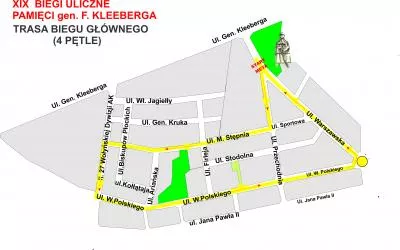 Organizatorzy biegów przygotowali dla zawodników tradycyjnie kilkanaście tras. Najkrótsza liczy 60 m, najdłuższa 10 km. Bieg główny zawodów poprowadzono najważniejszymi ulicami miasta na 5 km pętli, z linią startu/mety zlokalizowaną pod pomnikiem Gen. Kleberga na ul. Warszawskiej. Kobiety pokonają jedną pętle, mężczyźni dwie.