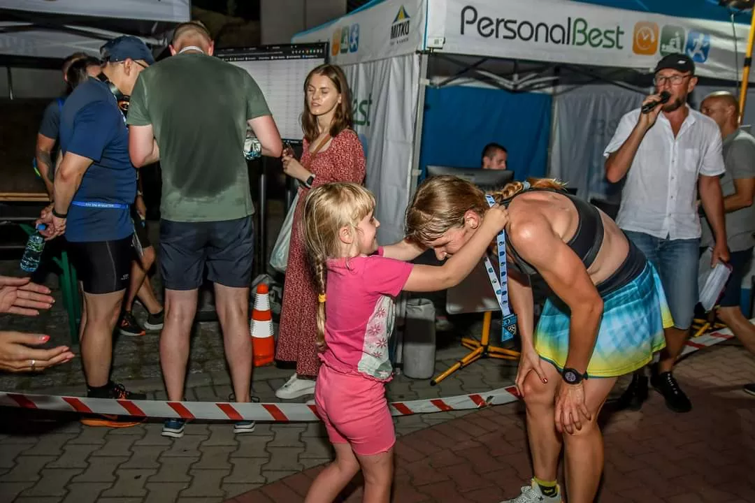 Na mecie czekała na mnie miła niespodzianka - córka wręczyła mi medal. Zaskoczyłam się czasem w jakim pokonałam trasę. O dziwo, udało mi się nawet poprawić zeszłoroczny wynik prawie o 4 minuty. Zajęłam 2 miejsce w K 16-39 oraz pierwsza z mieszkanek Rydułtów.