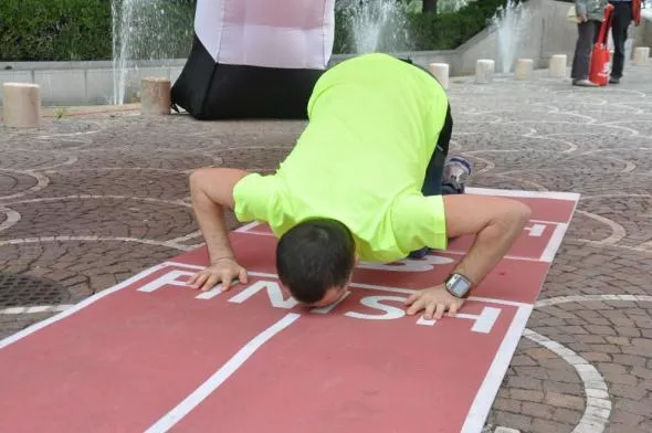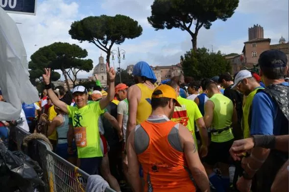 W sobotni poranek udaliśmy się na maratońskie Expo po odbiór pakietów. Już kolejka w kształcie miniaturowej trasy maratonu z cytatami o bieganiu na znacznikach kilometrowych stanowiła o wyjątkowości tego miejsca. To nie było biuro zawodów, w którym załatwia się formalności w 3 minuty i ucieka do domu. To trzeba było przeżyć! Dziesiątki stoisk producentów odzieży, butów, odżywek i gadżetów sportowych, pokazy, prezentacje, losowania nagród, szansa na fotkę w dowolnym przebraniu przy stanowisku jednej firmy albo z rzymskim żołnierzem kawałek dalej… Do tego pakiet z pięknym plecakiem, koszulką i… paczką makaronu. Włochy pełną gębą.