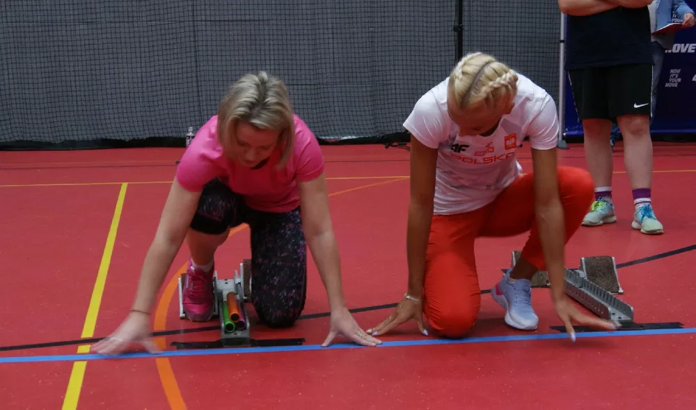 Stacja Justyny Święty-Ersetic była bardziej techniczna: medalistka mistrzostw świata i Europy w biegu na 400 m i liderka sztafety uczyła wyjścia z bloków startowych i niezwykle trudnego elementu zmiany pałeczki.