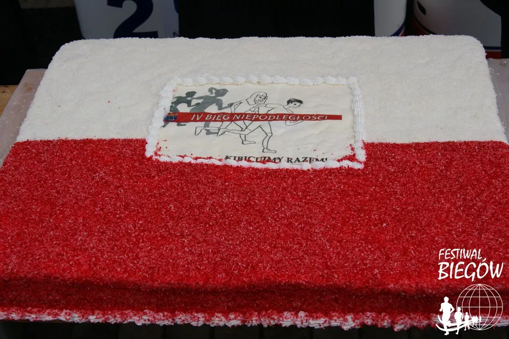 Rywalizacja sportowa to, oczywiście, nie jedyna atrakcja IV Biegu Niepodległości w Gminie Nieporęt. Uczestnikom bezpłatnie serwowano pyszne wypieki cukiernicze, placki ziemniaczane, żurek i kluski śląskie z gulaszem, a proboszcz miejscowej parafii i wójt gminy podzielili między wszystkich olbrzymi biało-czerwony tort z logo imprezy.