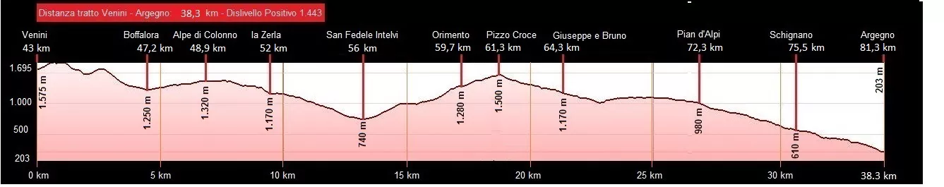 Średnia trasa mierzy 65,5 km, ma 4000 m przewyższenia. Również tworzy ją pętla, która rozpoczyna się i kończy w Menaggio. Maksymalny czas na pokonanie trasy to 14 h 30 min. Po drodze są dwa punktu kontrolne: Plesio (28,7 km – 7 h 35 min) oraz Venini (43 km – 11 h 25 min). Trasa w początkowej i końcowej części pokrywa się z trasą długą.