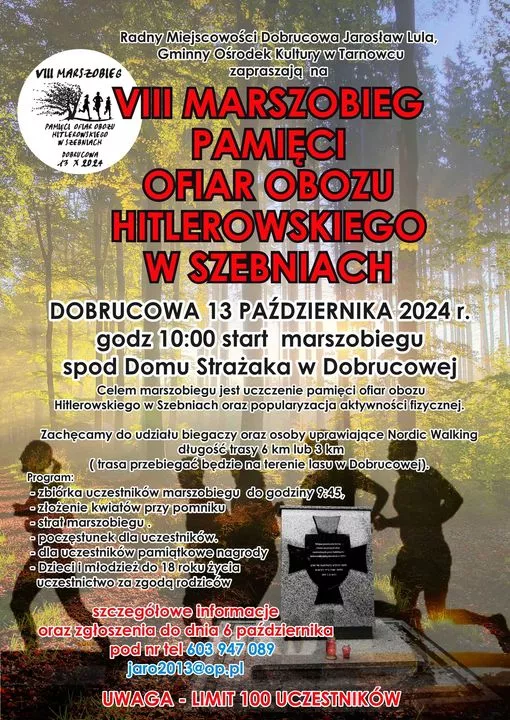 Radny miejscowości Dobrucowa Jarosław Lula oraz Gminny Ośrodek Kultury w Tarnowcu ( powiat jasielski) zapraszają miłośników nordic walking oraz biegaczy na VII Marszobieg upamiętniający ofiary obozu w Szebniach. Impreza w tym roku odbędzie się w niedzielę 13 października start o godzinie 10 spod Domu Strażaka w Dobrucowej.