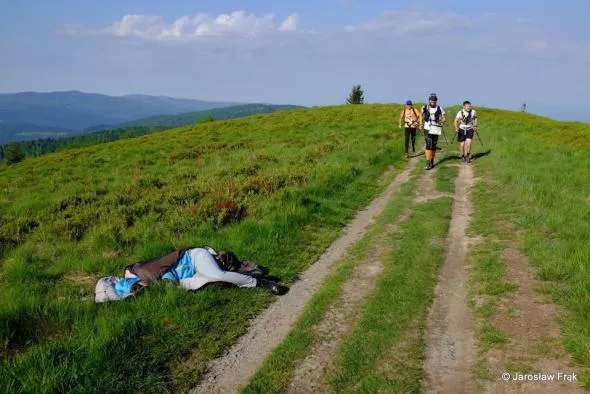 Na pierwszy punkt dotarliśmy ze sporą grupą, "odbiliśmy czas" i stanęliśmy kolejnym dylematem. Ludzie rozbiegli się w trzech kierunkach. Znowu intuicyjnie wybraliśmy jakąś grupkę i podążyliśmy za nią ścieżką w dół. Nagle jednak grupa odbiła w lewo i zaczęła biec w dół na przełaj. W tym właśnie momencie pojąłem co to znaczy bieganie na orientację. Po parunastu minutach wybiegliśmy na wypłaszczenie gdzie było widać ludzi przybywających z różnych kierunków. Ci, którzy jeszcze nie tak dawno biegli przed nami, zniknęli gdzieś na horyzoncie za nami. Wiedziałem już, że bez nawigacji nie pobiegamy, dlatego przyjęliśmy jeden z wcześniej rozważanych wariantów – w nocy tylko chodzenie, a w dzień zobaczymy.