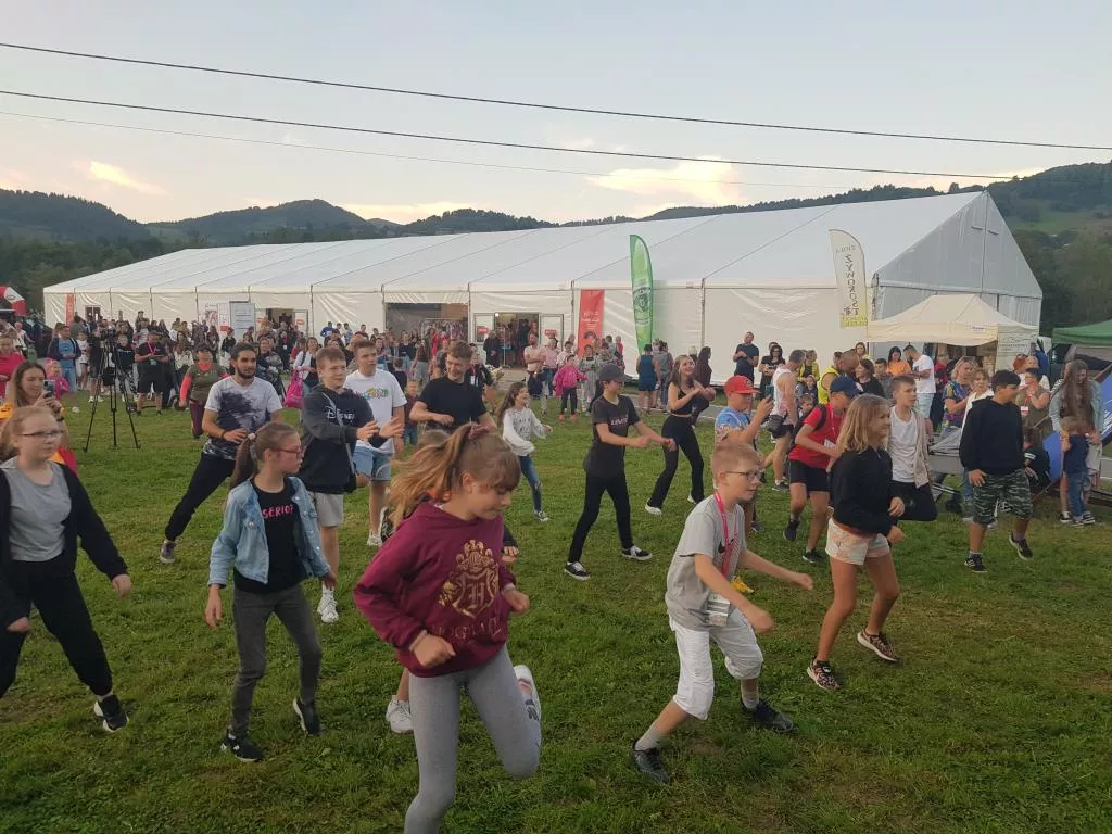 Jedną z atrakcji pierwszego dnia 12. Festiwalu Biegowego w Piwnicznej-Zdroju była rozgrzewka z Fit Lovers, która przyciągnęła tłumy zarówno młodych, jak i nieco starszych.