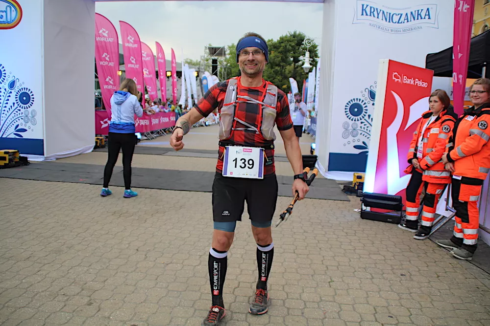 – Klasyczną krynicką setkę też biegłem cztery lata temu – wspominał. – Tej nowej agrafki jeszcze nie znałem. Zbieg do Rytra jest miejscami bardzo stromy. Całe szczęście, że było na nim sucho, bo inaczej by wszyscy zjeżdżali na tyłkach. Trasa ogólnie jest wymagająca. Do 40 km chyba prowadziłem, ale nie jestem pewny, bo biegliśmy wśród zawodników z różnych dystansów. Ale to mniej istotne, bo tu najważniejsza była walka z samym sobą.