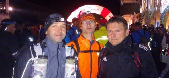 Docieram tam w dobrej formie po 9 godzinach i 13 minutach. Najpierw jedzenie, a potem postanawiam jeszcze zmienić skarpetki. Moim oczom ukazują się spore i niezbyt przyjemnie wyglądające pęcherze na palcach. Mamuśka panikuje, ojciec mówi żebym dał sobie spokój. Dziękuję bardzo za takie rady. Naklejam plastry i mocno zregenerowany ruszam dalej. Coś mi się jednak pokićkało, bo byłem przekonany, że po przepaku jest kilka kilometrów płaskiego terenu, na którym będę mógł mocniej pobiec. Zamiast tego czeka mnie kolejna wspinaczka, a potem kolejna. Zaczynają się dziać dramaty. Ludzi łapią skurcze, niektórzy wymiotują. Mnie to omija, a do psychiki dociera kolejny motywujący sygnał o treści „Ukończysz! Jesteś mocny!”. W takim pozytywnym nastroju docieram do Wierchomli. I tutaj chciałbym oficjalnie wnieść o przyznanie jakiejś nagrody dla mieszkańców tej miejscowości! Co chwilę stał ktoś, kto częstował wodą z sokiem, dzieci przyrządzały lemoniadę i pytały się „czy chce sobie pan zmoczyć głowę?”. Było widać, że ludzie tym żyją. Nie myśląc nawet o zmęczeniu melduję się na trzecim przepaku, na którym spędzam chyba najmniej czasu. Wypijam tylko magnez, pół butelki coli, której resztę chowam do plecaka i mówię sobie, że druga połówka będzie nagrodą za wspinaczkę pod stok narciarski.