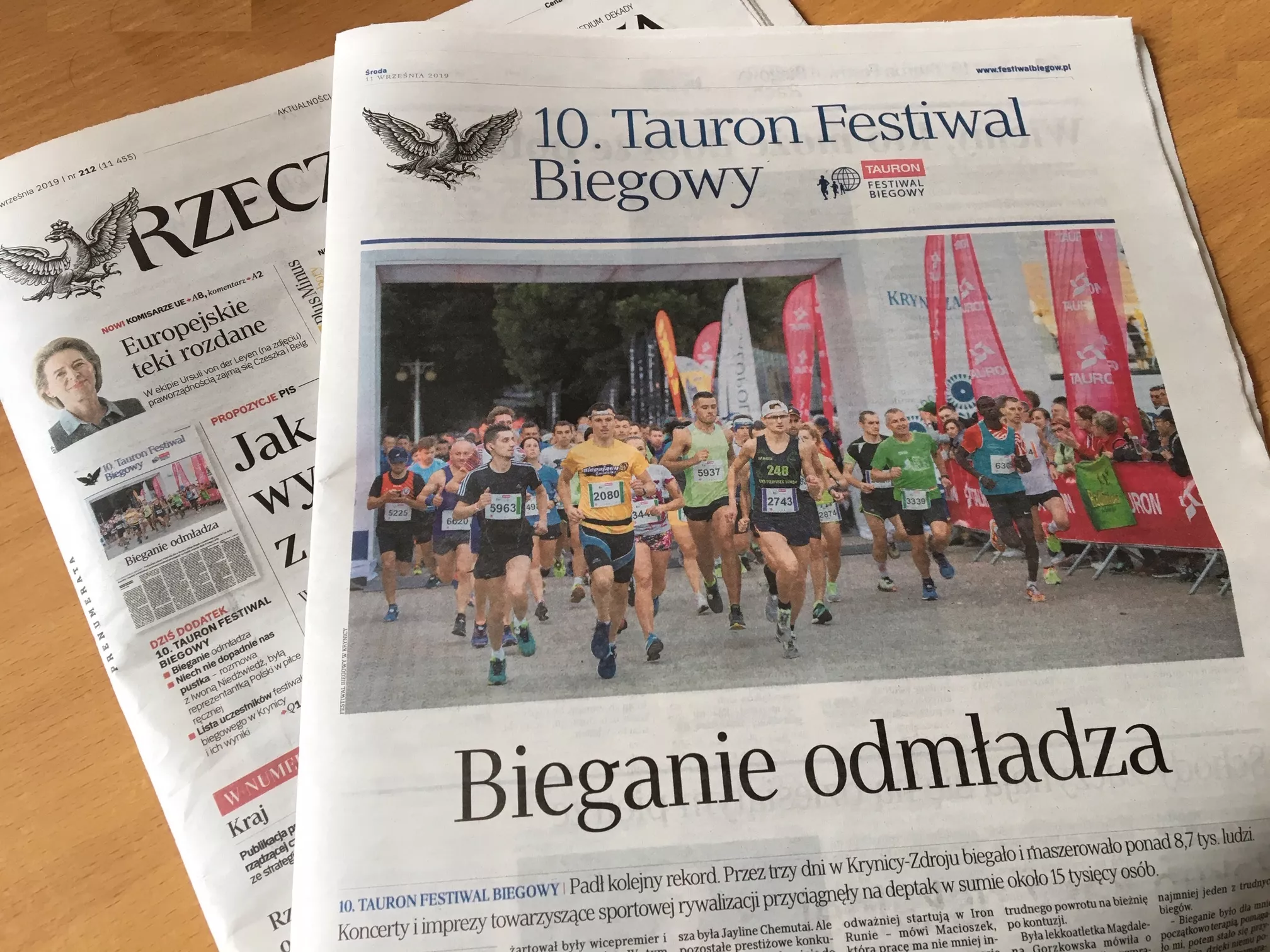 Obszerne podsumowanie krynickiej imprezy, rozmowy z uczestnikami, zdjęcia, a przede wszystkim wyniki festiwalowych zmagań znajdziecie dziś w specjalnym dodatku do dziennika "Rzeczpospolita" - wieloletniego partnera medialnego 10. TAURON Festiwalu Biegowego.