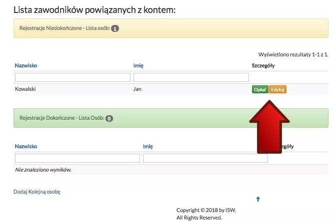 Jeśli na na liście nie ma twojego zgłoszenia, dodaj je poprzez zakładkę „Dodaj osobę”. Po zapisaniu zgłoszenia możesz od razu przejść do płatności poprzez system DOT PAY.