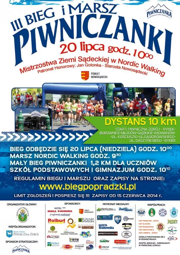 Miasto i Gmina Piwniczna-Zdrój oraz Miejsko-Gminny Ośrodek Kultury zapraszają do udziału w trzeciej edycji Biegu i Marszu Piwniczanki, który 20 lipca zagości na trasach Piwnicznej - Zdrój. Impreza zaliczana będzie do cyklu Grand Prix Małopolski.