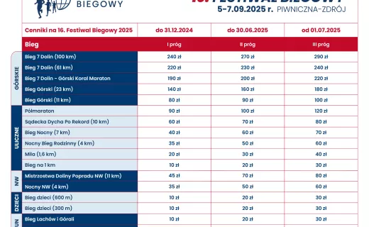 W dniach 5-7 września 2025 r. malownicza miejscowość uzdrowiskowa Piwniczna-Zdrój stanie się stolicą polskiego biegania podczas 16. edycji najstarszego Festiwalu Biegowego w Polsce . Organizatorzy prz...