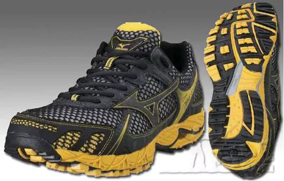 MIZUNO ASCEND 6 ? but na warunki, gdzie jest dość mokro, ma membranę zapewniającą zabezpieczenie przed przemakaniem, średnio wysoki bieżnik i dobra amortyzacja. Guma jest pośrednia, pozwalająca na bieganie zarówno na twardej nawierzchni jak i płytkim śniegu. Dobrze amortyzujący i stabilizujący stopę. Miałem w ręce ?próbkę? Ascend 7 -bardziej odważny kolorystycznie, minimalnie lżejszy oraz agresywniejszy bieżnik ? POLECAM. (zdjęcie http://f-h-e.com.au)